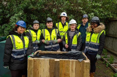On the Wednesday and Thursday, the students were based at the Thames View Lodge and Hockley Mews retirement housing in Barking, where they worked with the Bellway team and contractor PGM Carpentry to build planters for the grounds.