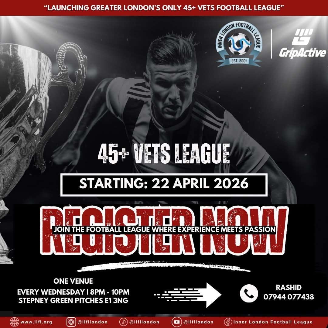 The Inner London Football League, in partnership with GripActive, is proud to announce the launch of Greater London’s only dedicated 45+ Veterans Football League, offering a unique and inclusive platform for older players to stay active, competitive, and connected.