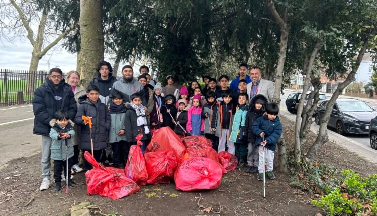 Young people supported by adults took part in an organised litter pick to collect almost twenty bags of rubbish in an hour.